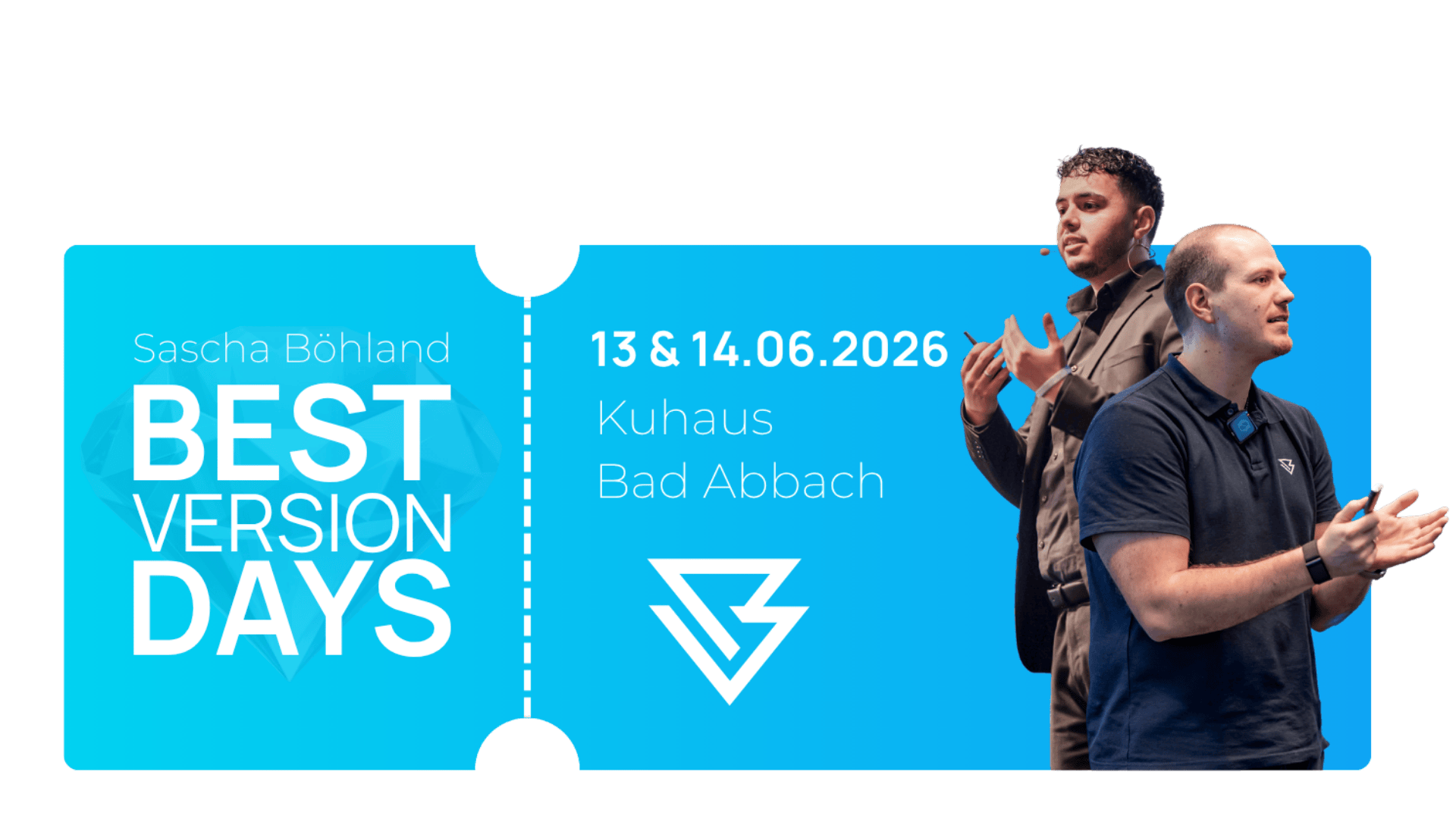 Bei den Best Version Days zeigt er dir, wie du Chancen erkennst, schneller Entscheidungen triffst und konsequent umsetzt – damit aus deinen Ideen endlich Ergebnisse werden.